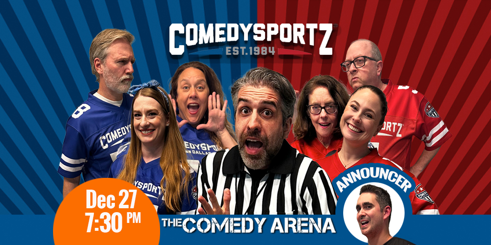 ComedySportz is improv comedy played like a sport—fast, interactive, and hilarious. Two teams compete in quick games and scenes inspired by audience suggestions, and you help decide who wins by cheering, voting, and awarding points. A referee keeps the match moving, calls fouls, and keeps the fun friendly for everyone!